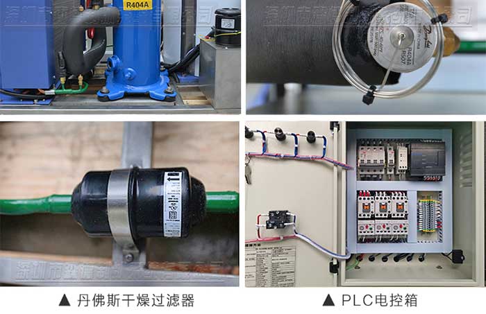 4.采用一線品牌制冷配件:德國比澤爾、丹麥丹佛斯、美國谷輪、臺灣漢鐘壓縮機(jī)、意大利萊富康等知名壓縮機(jī),丹佛斯電磁閥、膨脹閥、干燥過濾器、美國愛默生膨脹閥等制冷配件,片冰機(jī)質(zhì)量可靠,故障率低,制冰效率高。